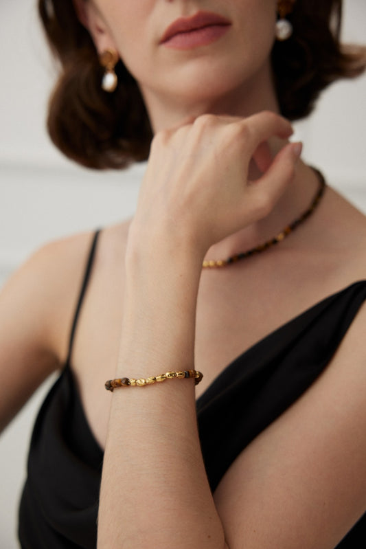 Vintage Lovers' Tiger Eye Golden Glitter Bracelet