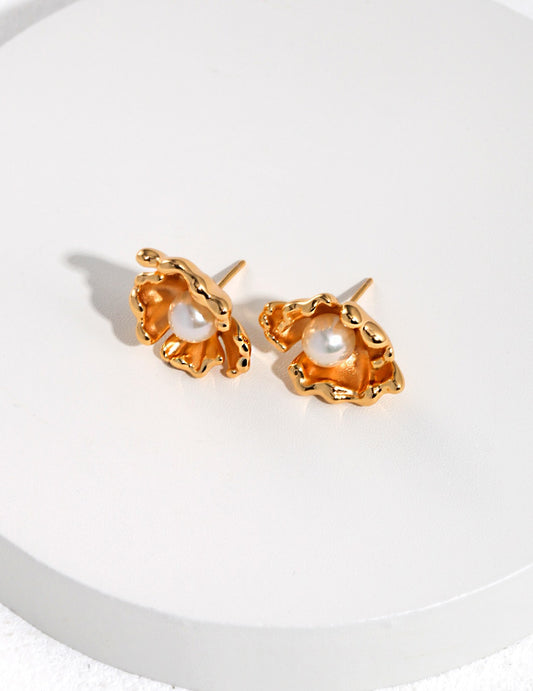 Melody Series - Moonlit Waves Pearl Stud Earrings