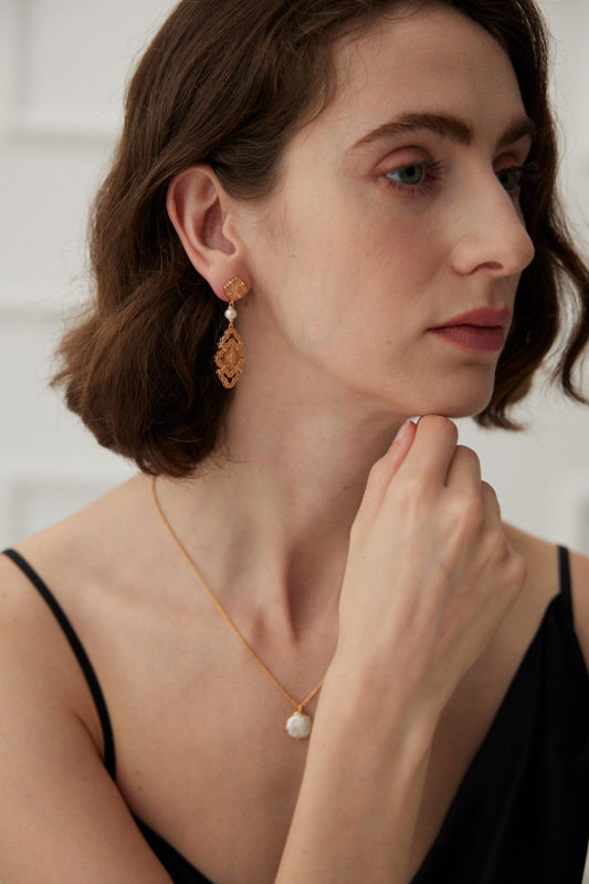 Vintage Lovers' Golden Lace Pearl Drop Earrings