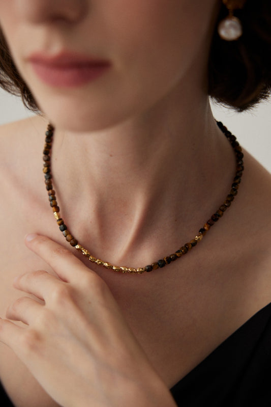 Vintage Lovers' Tiger Eye Golden Glitter Necklace